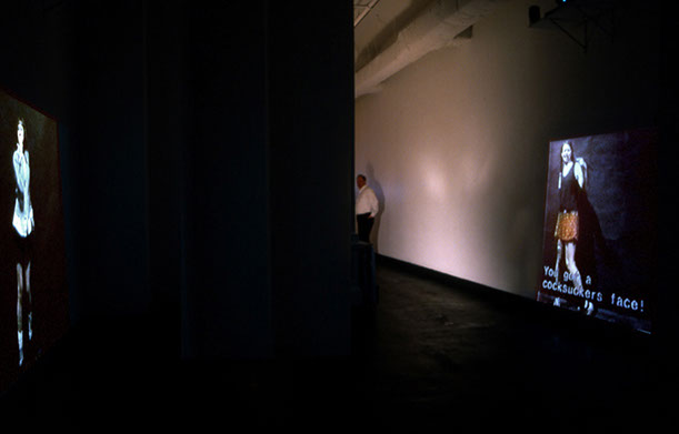 Cockfight. Two frontal projections. Installation view, Modern Culture, New York.