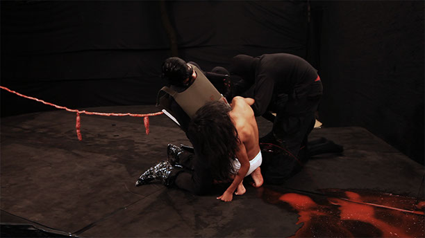 Látex, vista de performance, Fundación Alumnos 47, Ciudad de México. Foto de Cannon Bernáldez.