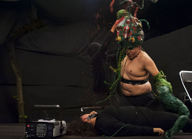 Látex, vista de performance, Fundación Alumnos 47, Ciudad de México.