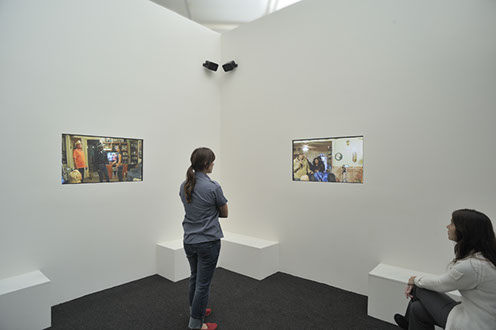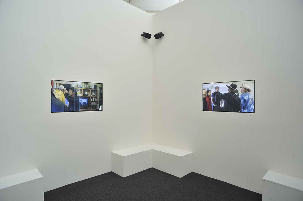 Rusos Blancos, video instalación de 4 canales. Vista de instalación. YBCA, San Francisco, EUA.