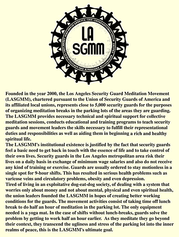 Los Angeles Security Guard Meditation Movement Manifesto, inkjet print, 40 x 30 inches.